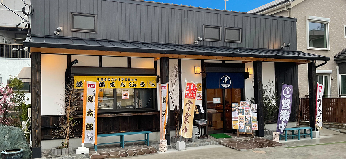 「蜂太郎まんじゅう」「蜂太郎わらびもち」の甘味が楽しめるお食事処です。